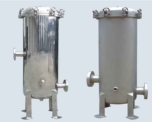 1. 保安過濾器一般是圓柱形殼體形狀,304、316L不銹鋼材質,可選炭鋼及樹脂殼體,再配以單支或多支濾芯組成。
